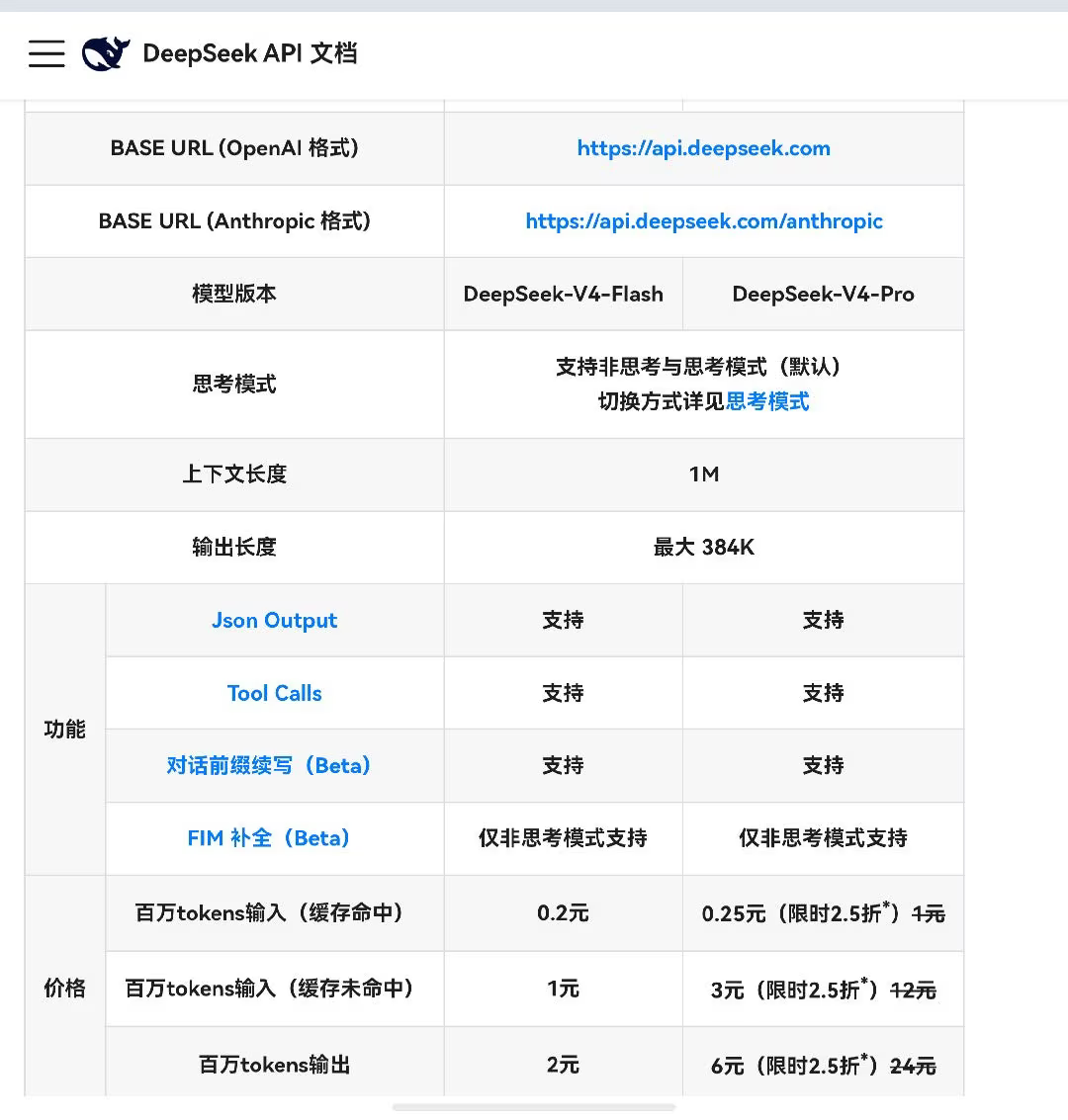 - DeepSeek V4-Pro API 限时 2.5 折,打骨折了